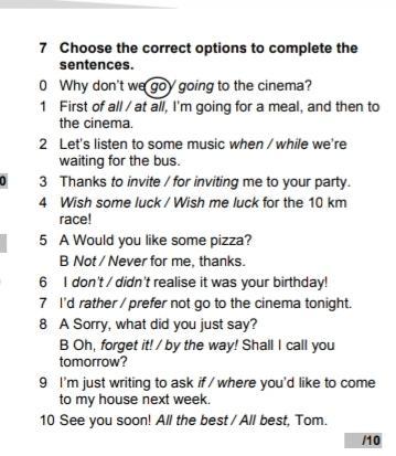 Відповідь: 1) all; 2) while; 3) for inviting: 4) wish me luck for; 5) not; 6) didn't; 7) prefer; 8) forget it; 9) if; 10) All the best