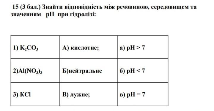 3) KCl Б) нейтральне в) pH = 7