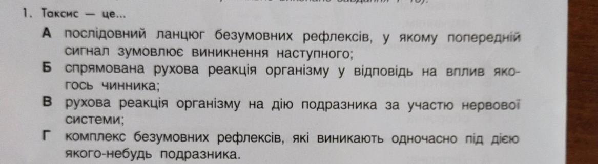 *Таксис - це спрямована рухова реакція організму на вплив зовнішнього чинника, яка може бути послідовною ланкою безумовних рефлексів або відбуватися за участю нервової системи.