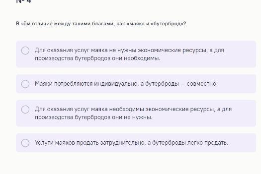 • Для оказания услуг маяка необходимы экономические ресурсы, а для производства бутербродов они не нужны.