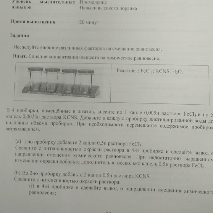 її) в 1-й пробирке и сделайте вывод об относительном влиянии хлорида железа и роданида калия на направление смещение положения химического равновесия.