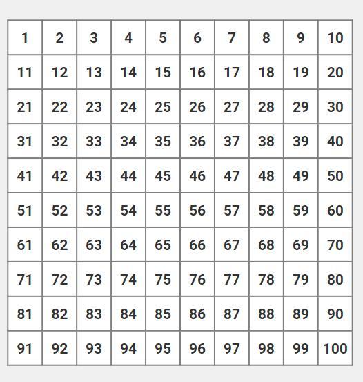 1) Продовж заповнювати таблицю послідовними числами до 100 включно. (Мал. 1а)