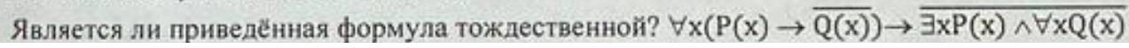 Нет, формула не является тождественной. В ней используются кванторы всеобщности (∀) и существования (∃), а также логические связки, что делает ее выражением обобщенных утверждений, но не обязательно тождественной истиной.