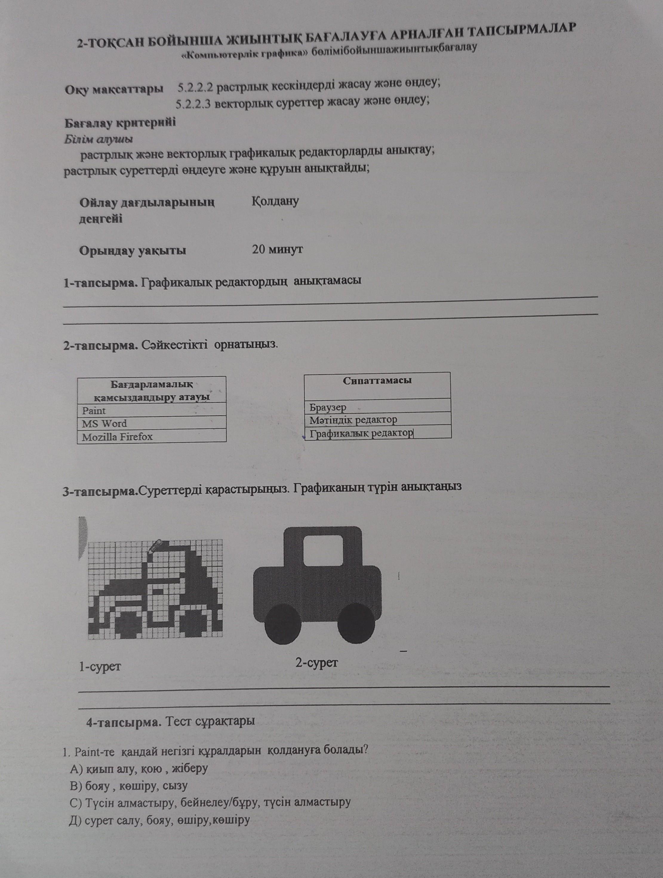 2 тапсырма Paint мәтіндік редактор, MS word графикалық редактор, Mozzila Frefox браузер