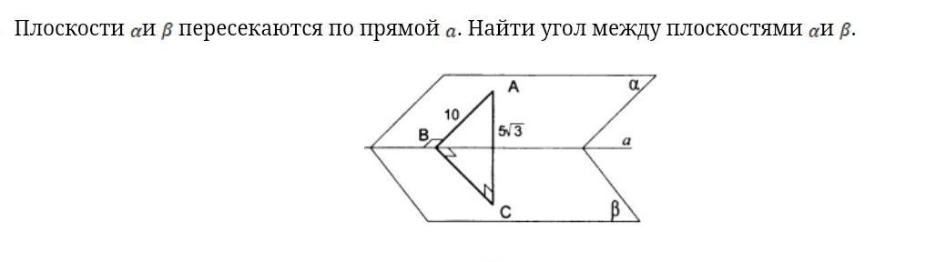 По рисунку видно , что АВ ⊥ а и СВ ⊥ а ⇒ угол между плоскостями - это ∠АВС .