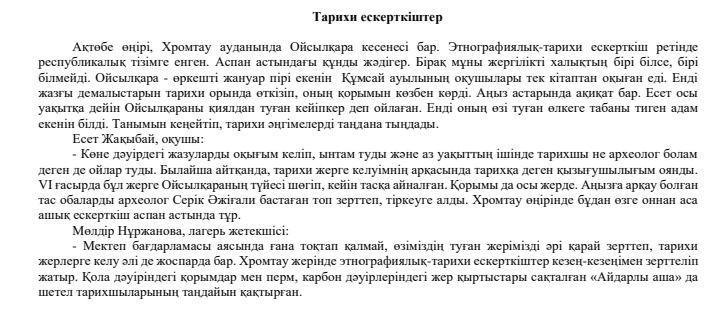 Маған Ойсылқара кесенесі қатты ұнады. Өйткені ол этнографиялық-тарихи ескерткіш ретінде республикалық тізімге енген. Бірақ Алтын адам да жақсы.