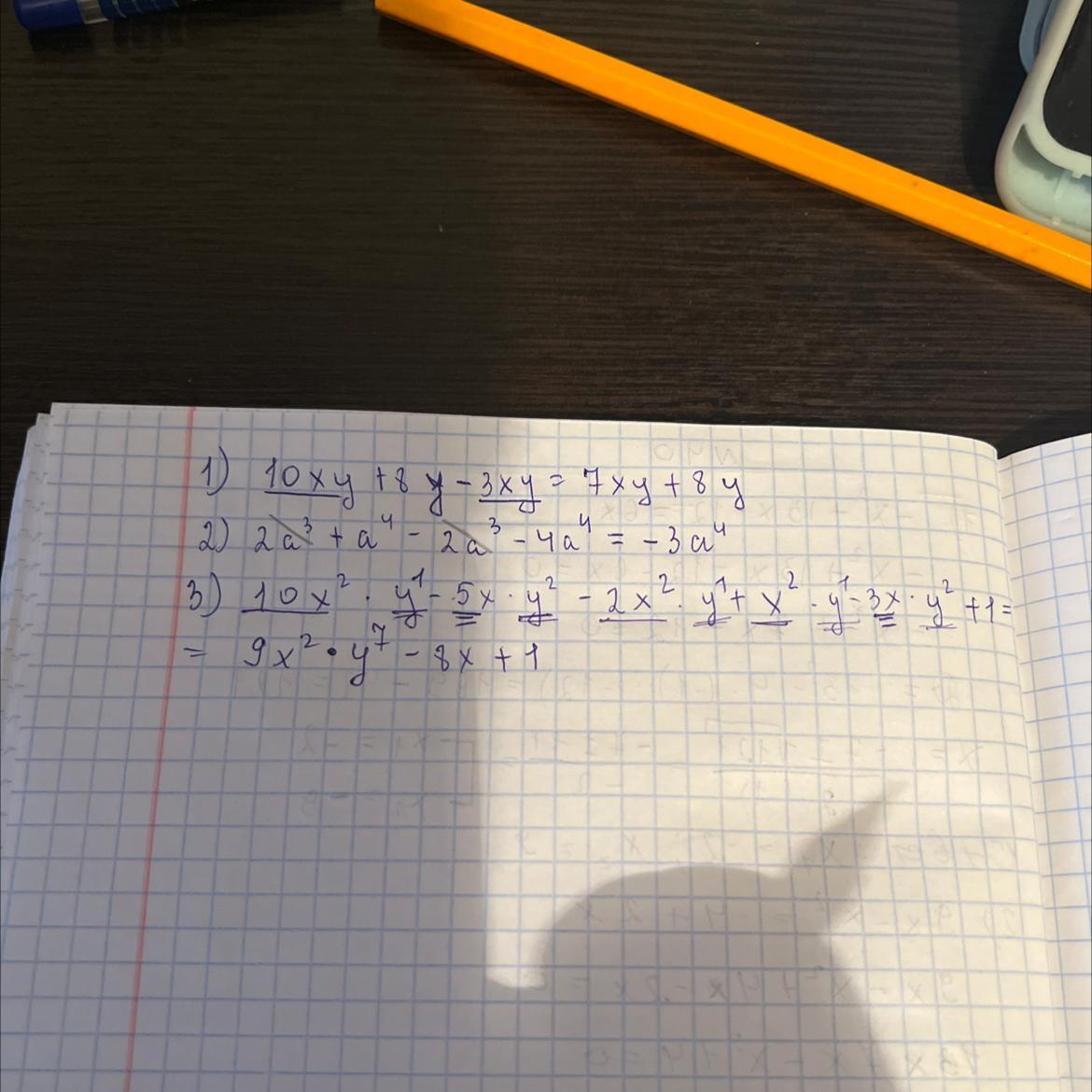3) 10x ^ 2 * y - 5x * y ^ 2 - 2x ^ 2 * y + x ^ 2 * y - 3x * y ^ 2 + 1