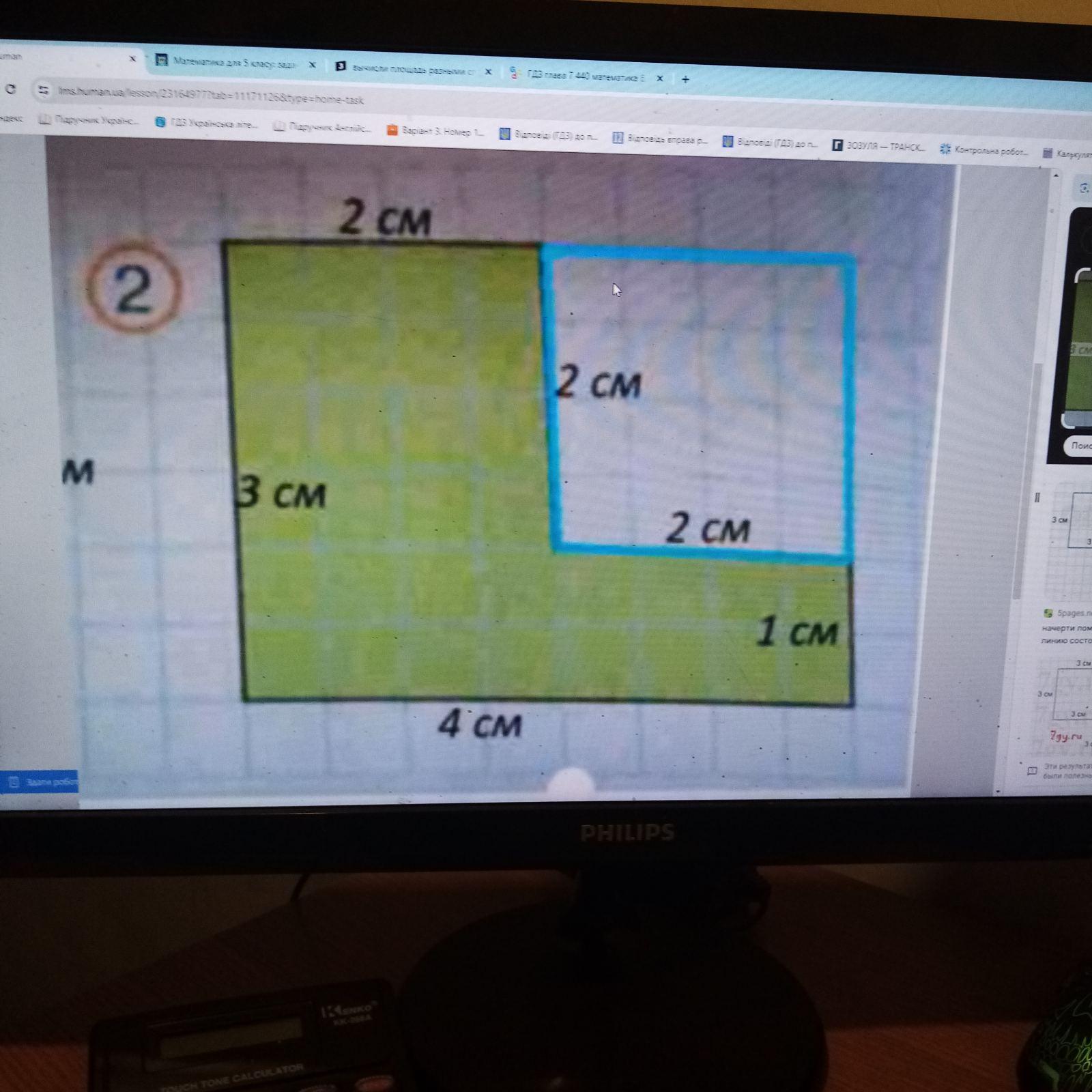 Зелена фігура -- 2 + 3 + 4 + 1 + 2 + 2 = 14см