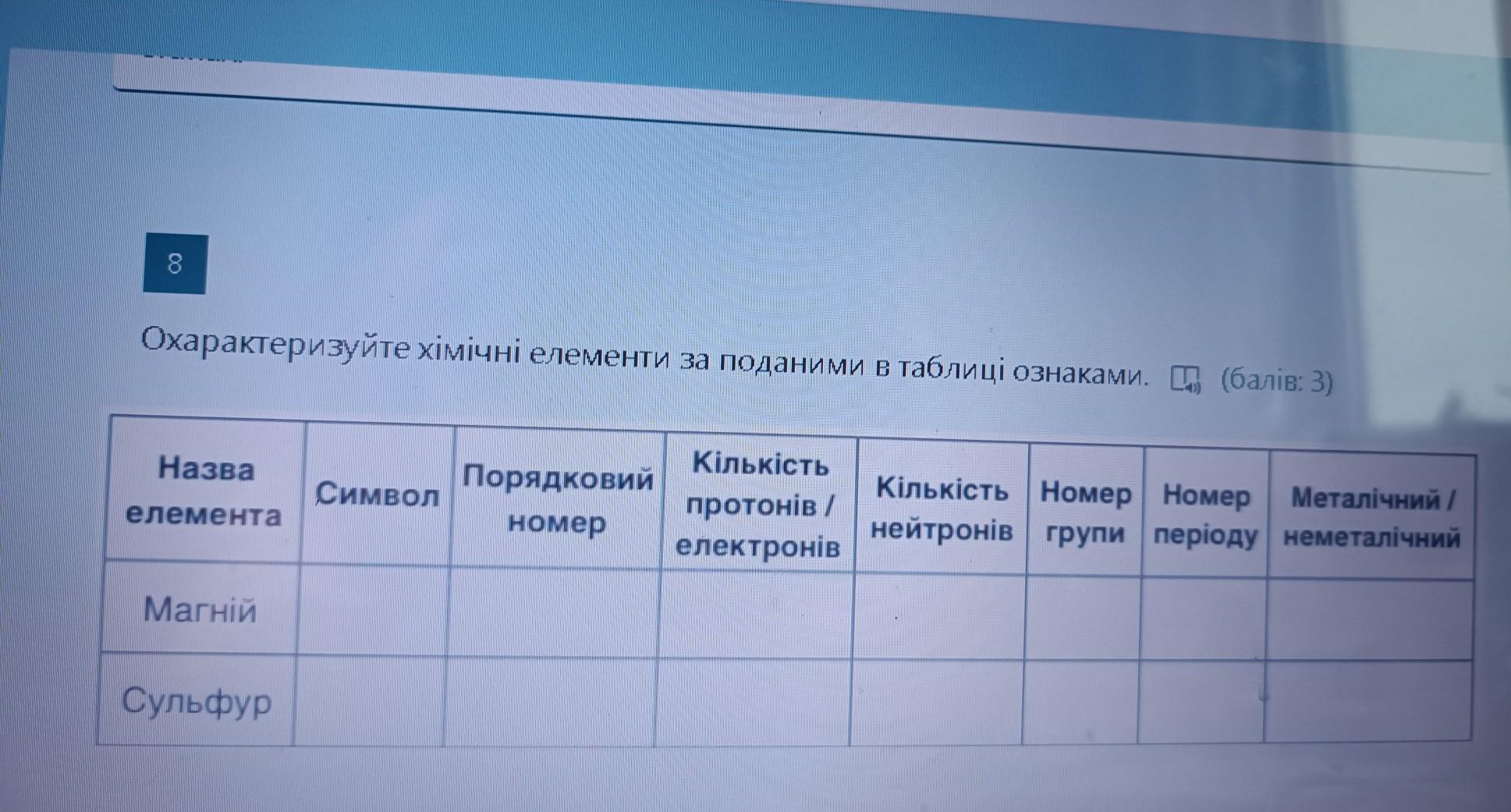 • Сульфур - S, 16, 16, 16, 6, 3, неметалічний.