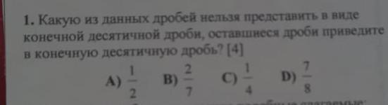 1. Какую из данных дробей нельзя представить в виде конечной десятичной дроби, оставшиеся дроби приведите в конечную десятичную дробь?