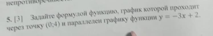 5. [3] Задайте формулой функцию, график которой проходит через точку (0:4) и параллелен графику функции у = -3x + 2. СРОЧНО!!!