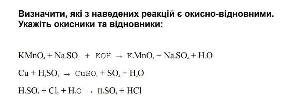 окисник Mn⁺⁷ + 1e = Mn⁺⁶ процес відновлення