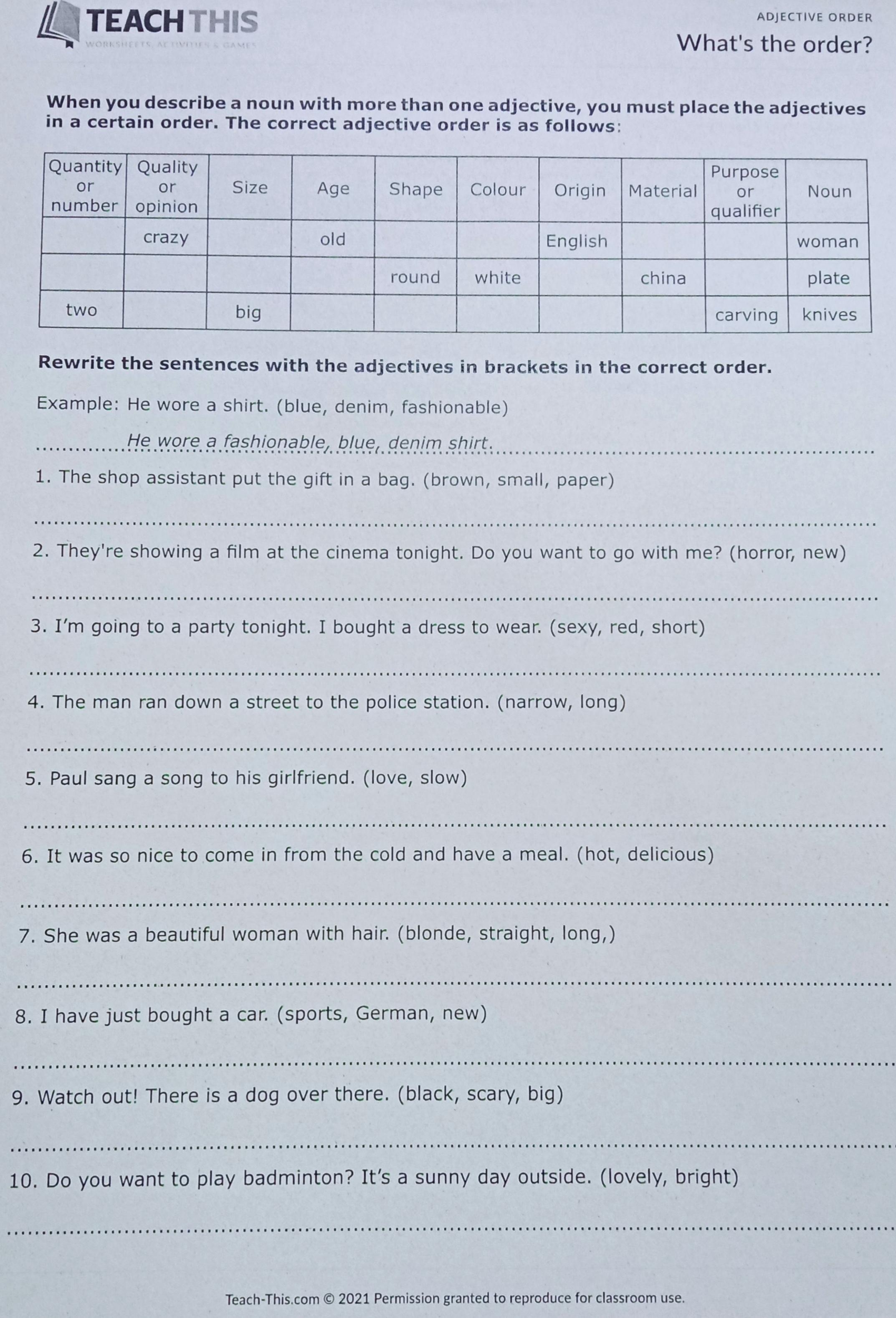 Помогите пожалуйста, нужно поставить прилагательные по-порядку, начиная с 5 предложения