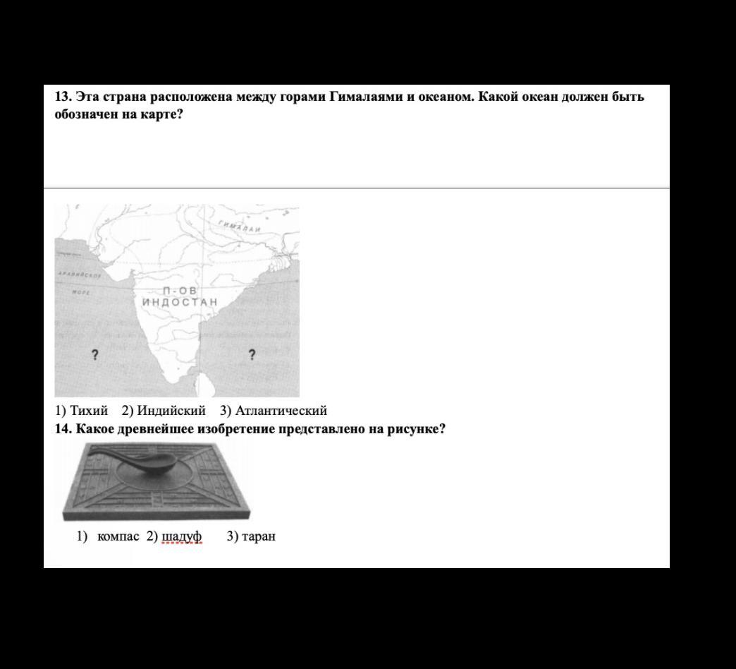 13. Эта страна расположена между горами Гималаями и океаном. Какой океан должен быть