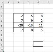Найменше число це найбільше по модулю, тобто =MIN(B3:D6) видасть -20.