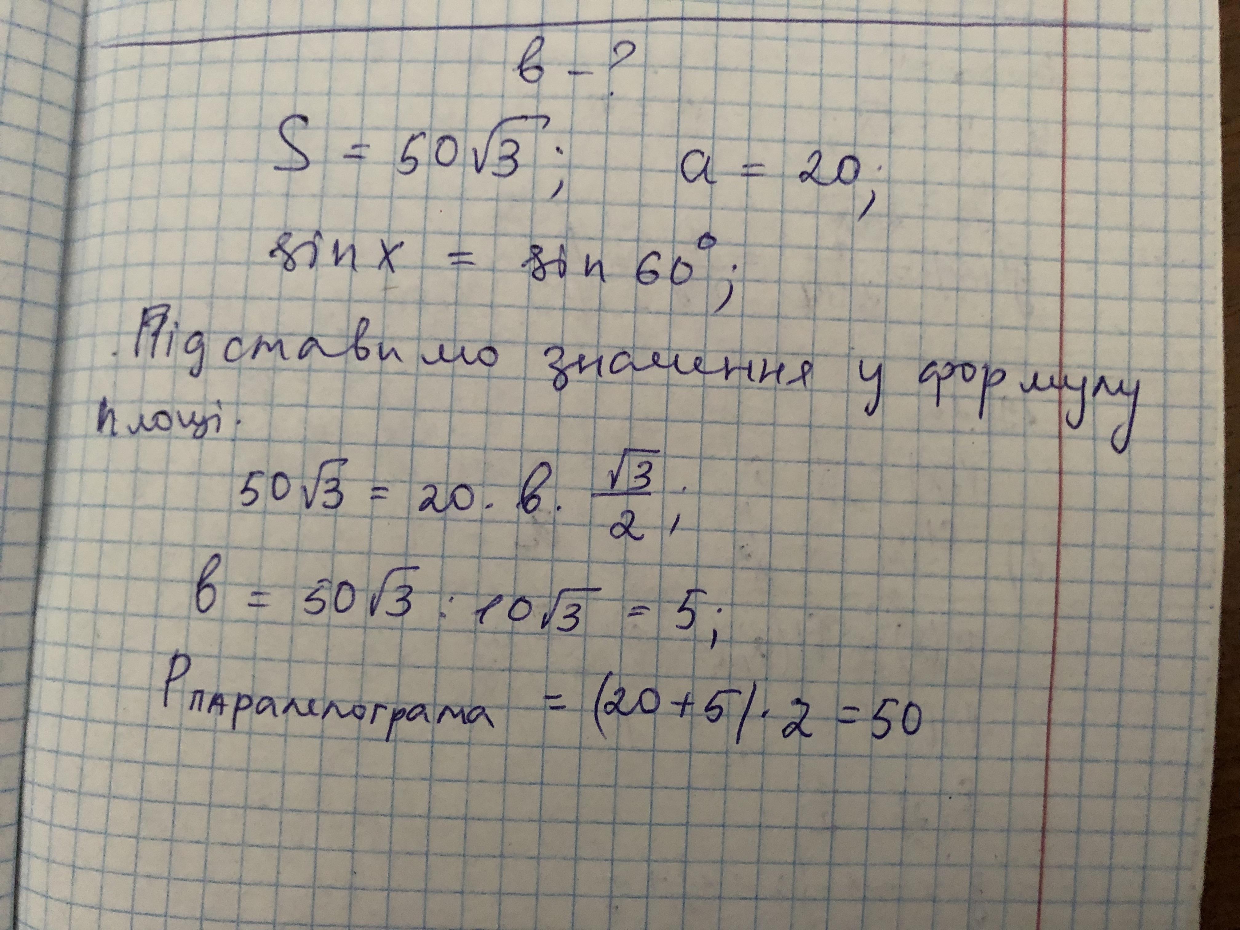 Використаємо формулу площі паралелограма: S=a*b* sin x.
