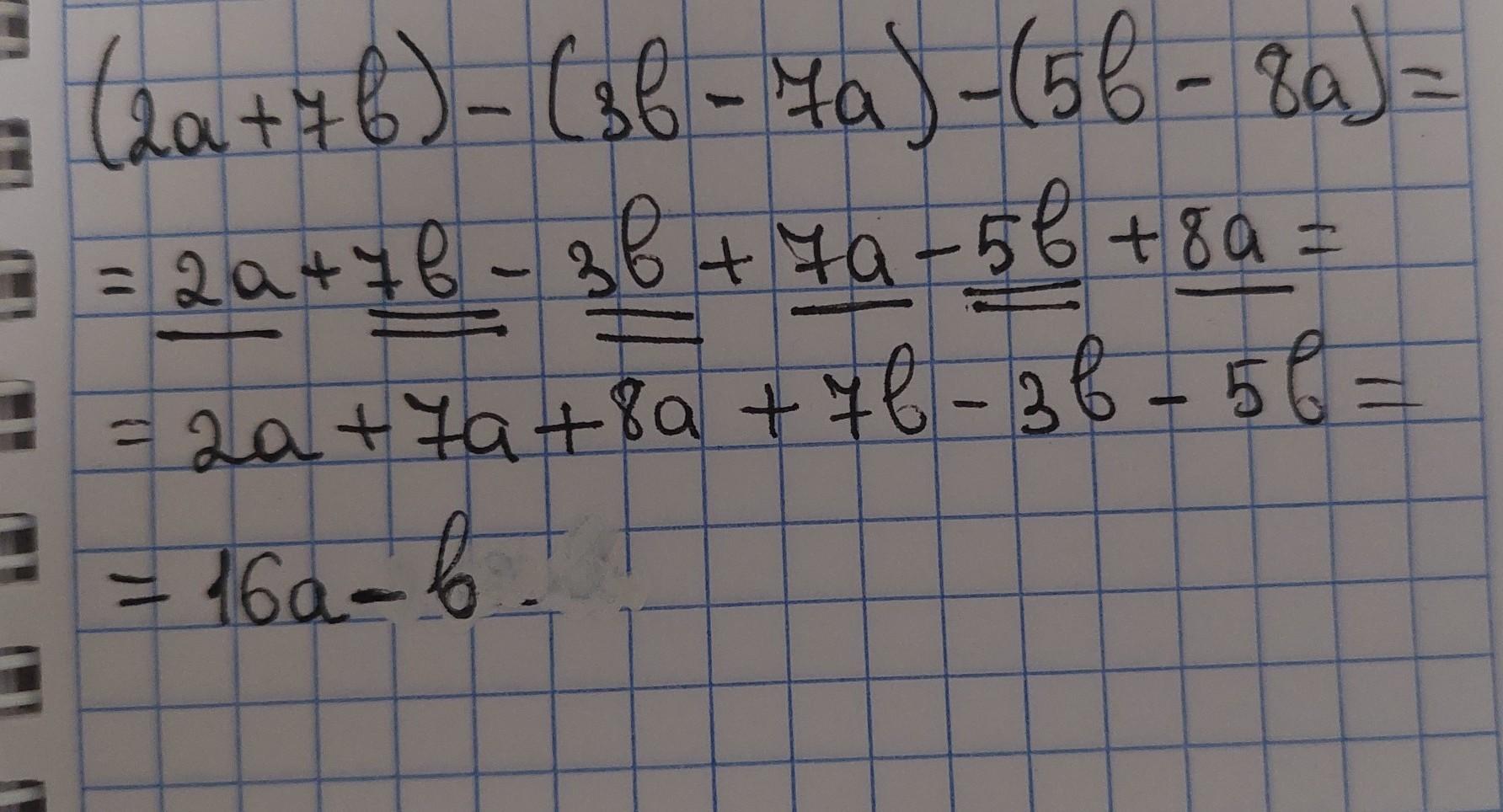 (2а + 7в) - (3в - 7а) - (5в - 8а) =
