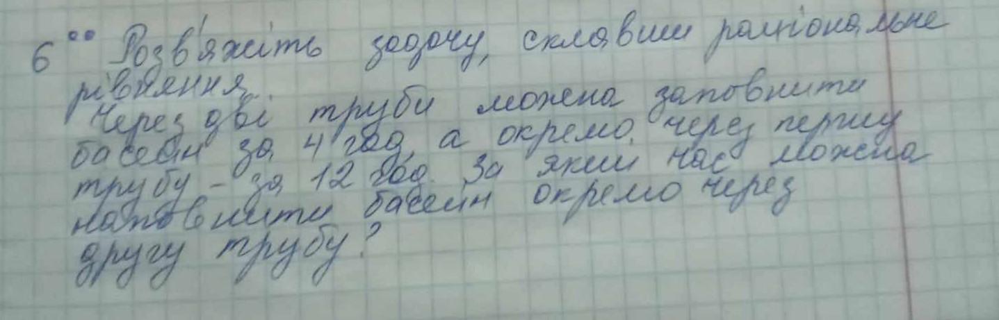 Х = 6 годин - необхідно для того, щоб друга труба окремо заповнила басейн.