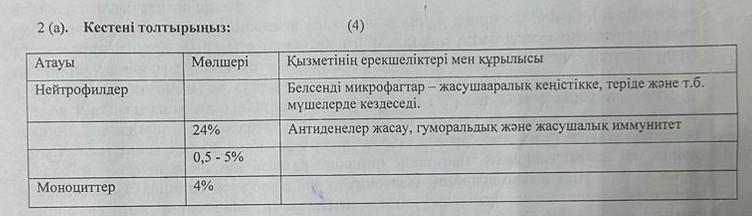 Моноциттер-4%-олар зиянды бөлшектерді жиі қан ағымынан тыс (буында, плевралық сұйықтықта және т.б.) тұтынады