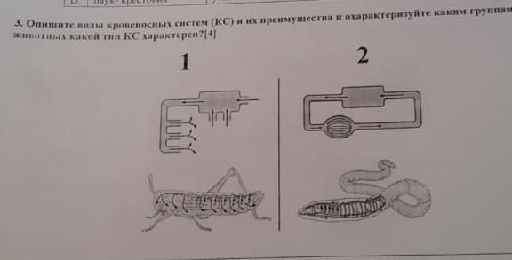 3. Опишите виды кровеносных систем (КС) и их преимущества и охарактеризуйте каки животных какой тип КС характерен?[4] 1 2 ме