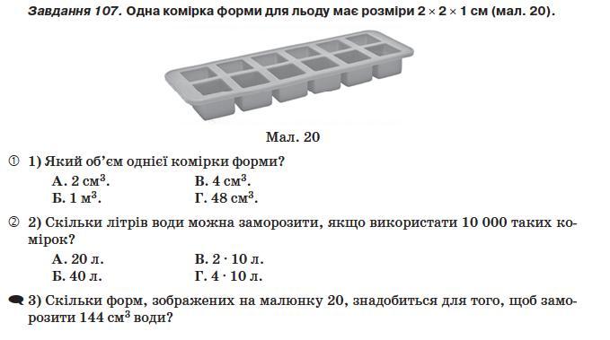3)скилькі форм зображених на малюнку 20,знадонабится для того щоб заморозити 144смʒ води?