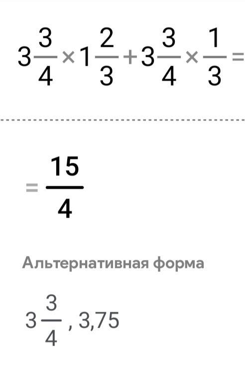 теперь множим так же само 3 3/4 и 1/3. 15/4 • 1/3 = сокращаем и получается 5/4
