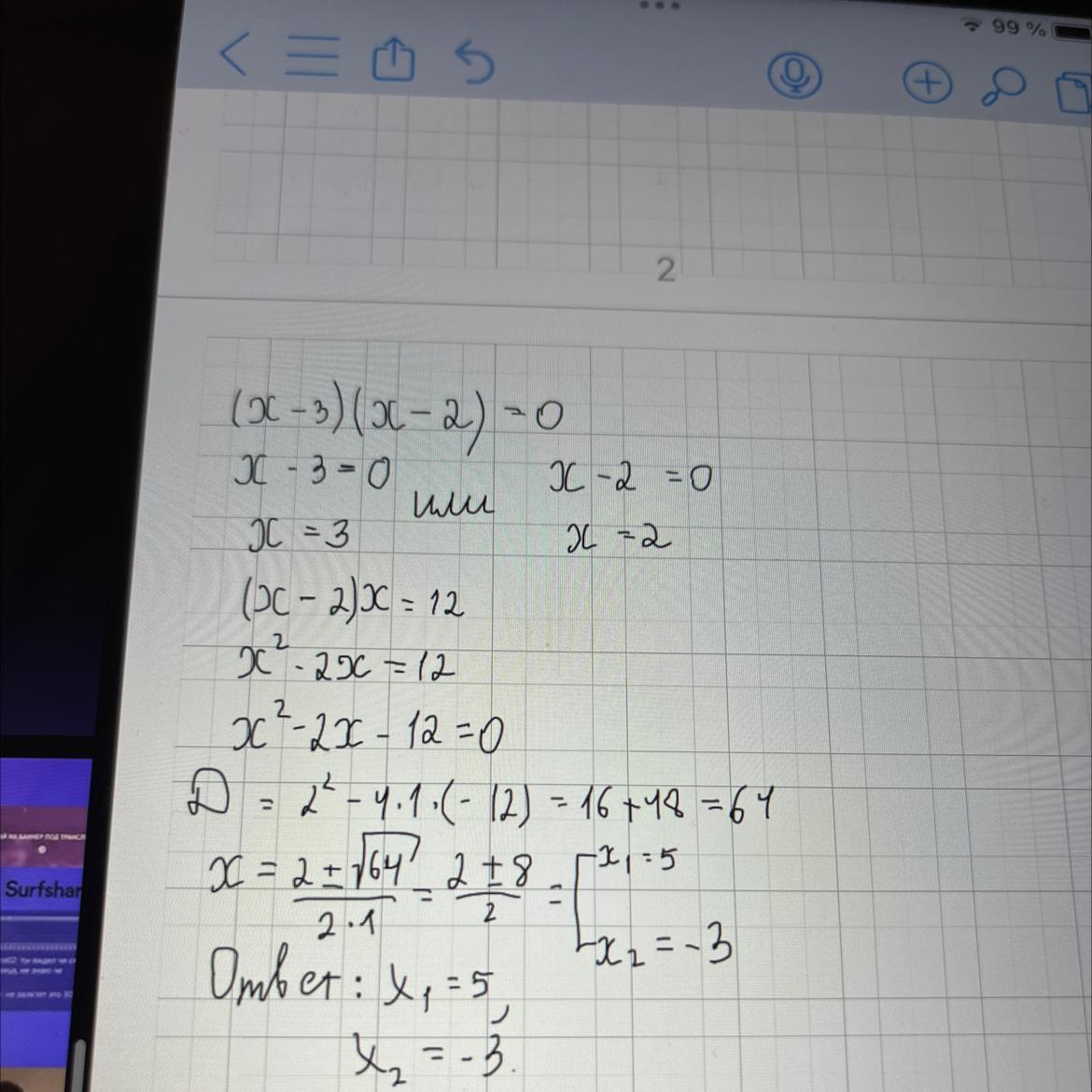 x-3=0 x=3 или (x-2)^2=0 x=2, или же х=0