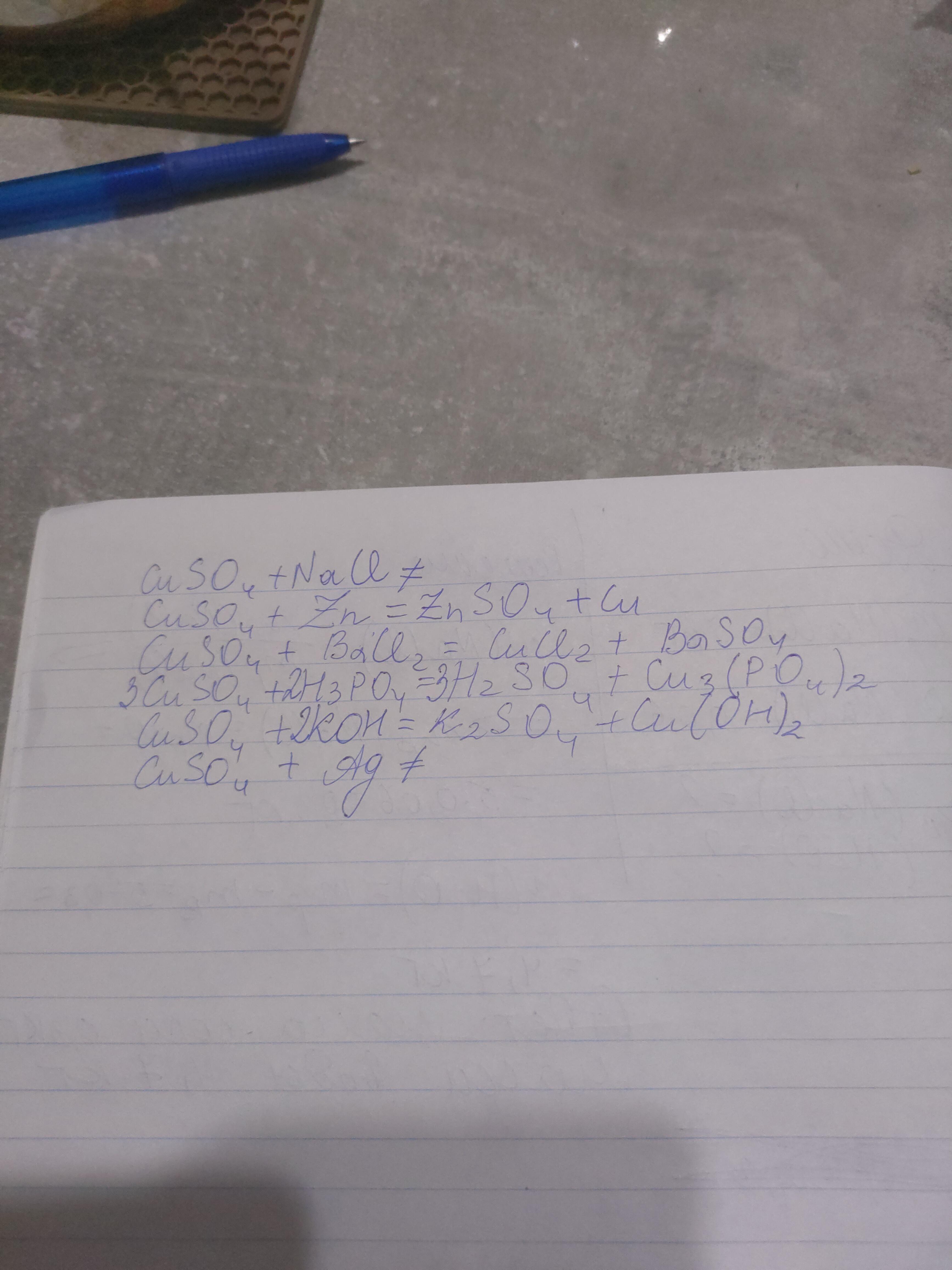 Ответ:перечеркнутый знак равенства значит реакция не идет