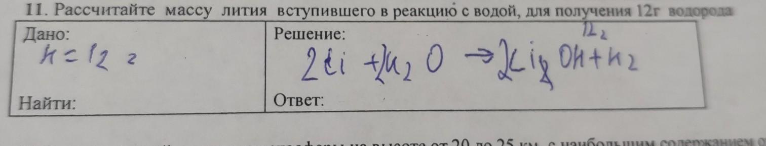 m(Li) = n(Li) * М(Li) = 12 * 7 = 84 г