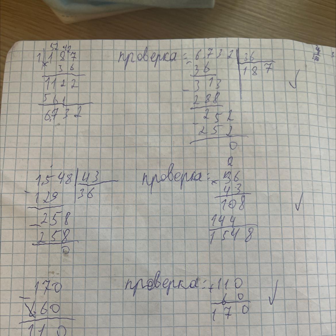 Задание 1. Вычисли. Сделай проверку. 187×36 1548:43 12 д нар 30 112 2 7 12 11 93 2 54 17 1 561 7702