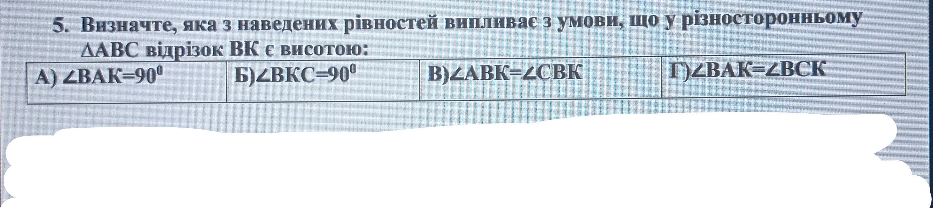 5. Умову задачі задовольняє варіант відповіді Б) ∠ВКС = 90° .