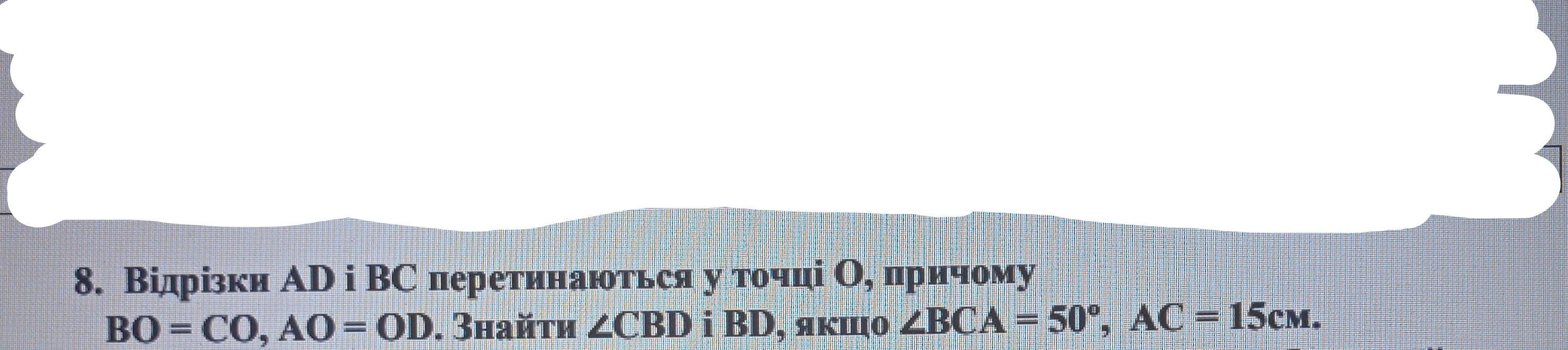 Звідси ∠BCA = ∠CBD = 50° ; AC = BD = 15 см .