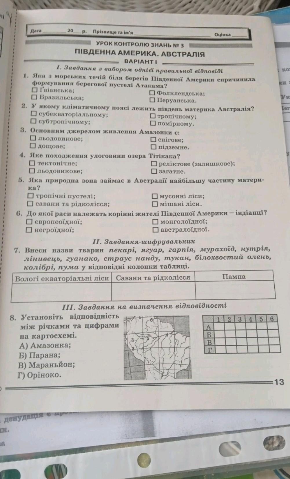 - 8. Установіть відповідність між річками та цифрами на картосхемі.
