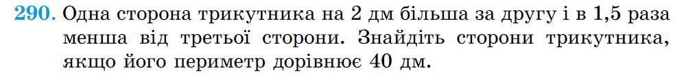Ответ:Нехай сторона а - х, то сторона в- х-2, сторона с- 1,5х. Оскільки периметр 40 дм, то складаємо р-ня: