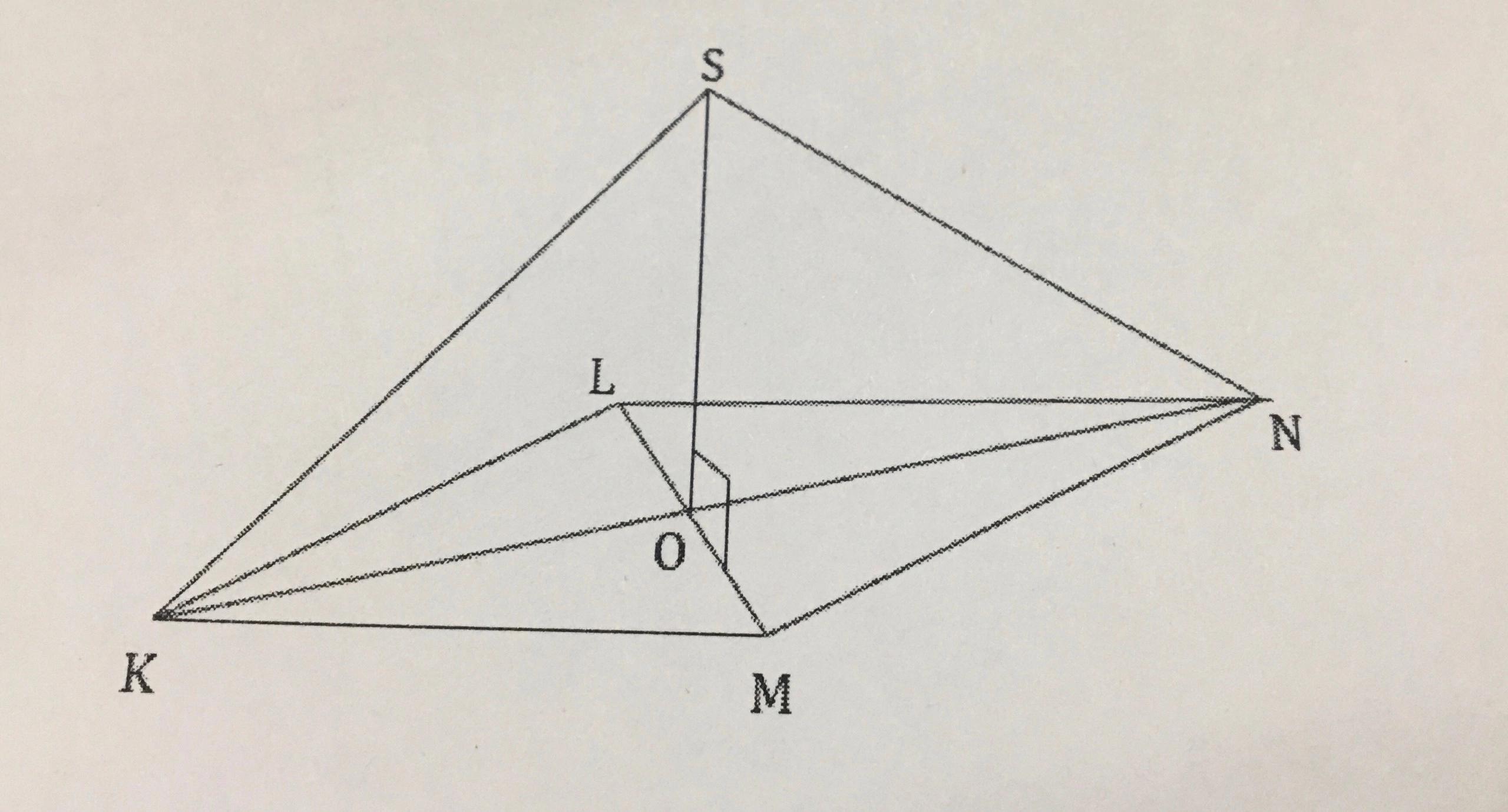 Диагонали квадрата пересекаются в точке О. Прямая SO ⊥ LM . Докажите, что прямая LM перпендикулярна плоскости KSN.