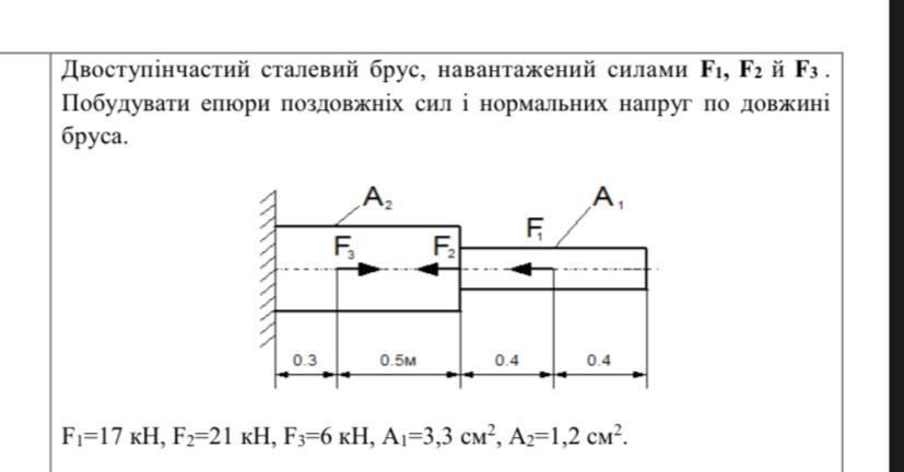 σ₁=N₁/A₁=17000/0,00033=51,5 МПа