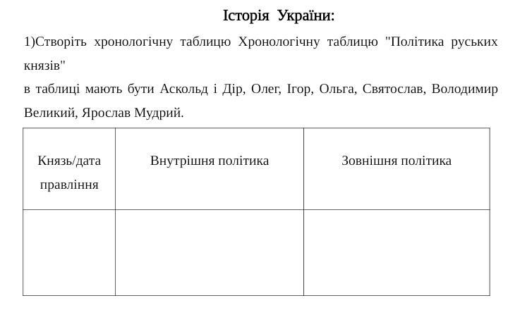 Відповідь:Князь/Дата Внутрішня політика Зовнішня політика Правління
