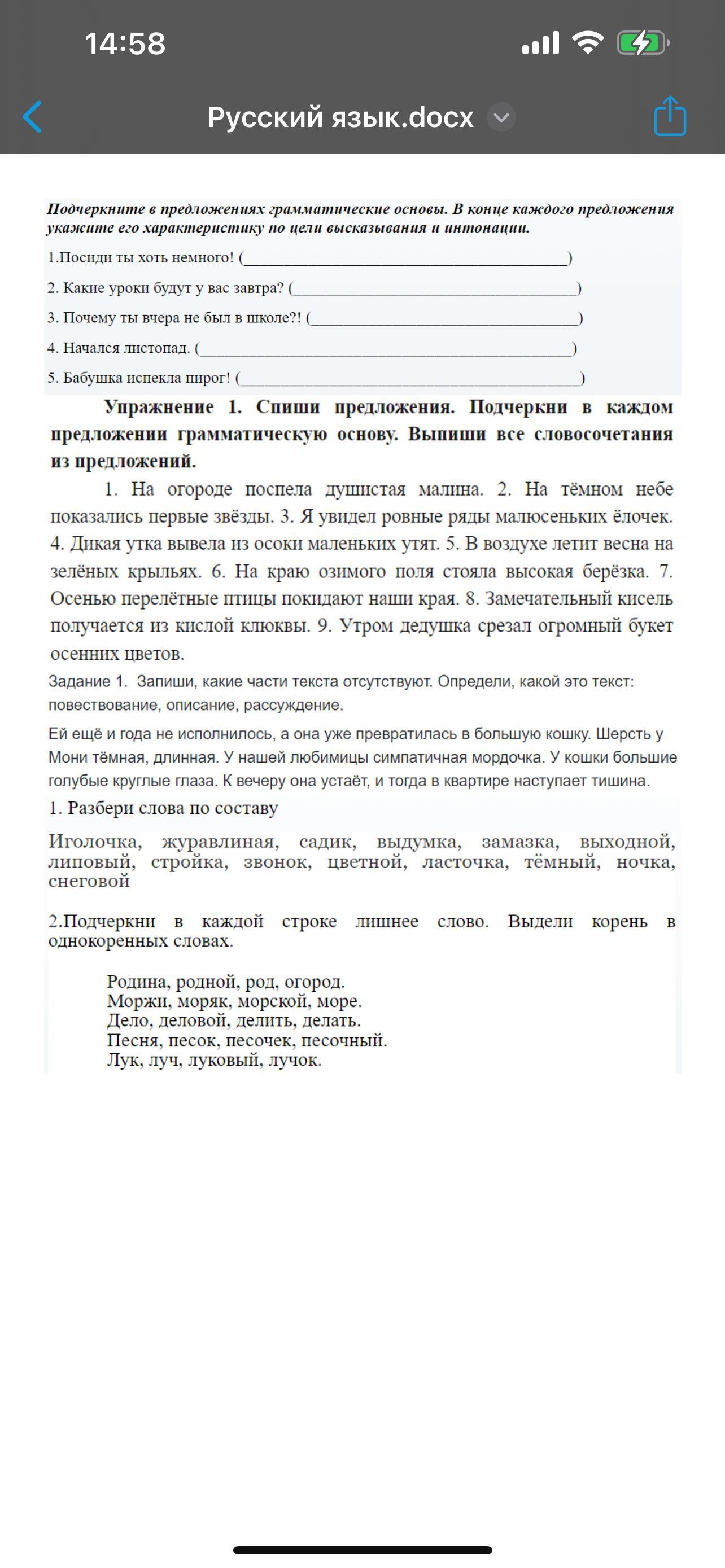 5. Бабушка(подлежащее)испекла(сказуемое)пирог! (повествовательное, восклицательное).