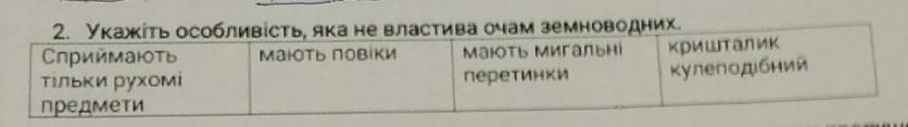 земноводні мають повіки ,також мають куле подібний кришталик та вони сприймають тільки рухомі предмети .