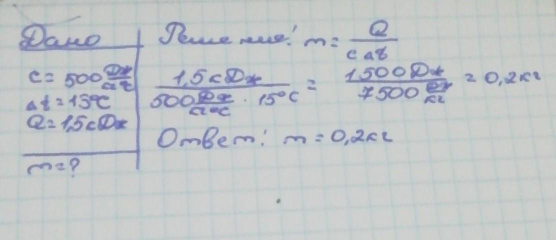 m = 1500 Дж/500 Дж/кг/°С × 15 °С = 3 кг