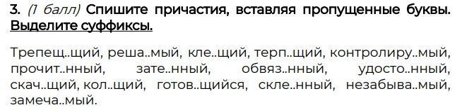 Трепещ..щий, реша..мый, кле..щий, терп..щий, контролиру..мый,