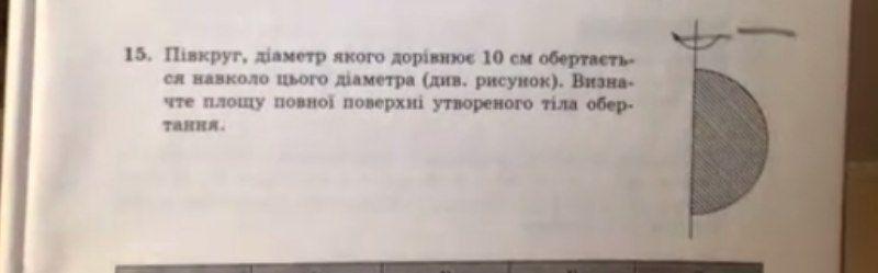 півкруг діаметр якого дорівнює 10 см обертається навколо цього діаметра визначте площу повної поверхні утворенної тіла обертання