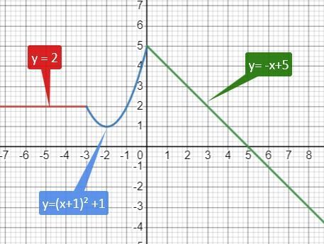 Т.е график функции у = x² смещаем влево по оси ОХ на 2 единицы и на 1 единицу вверх по оси OY. это для -3 < х ≤ 0.