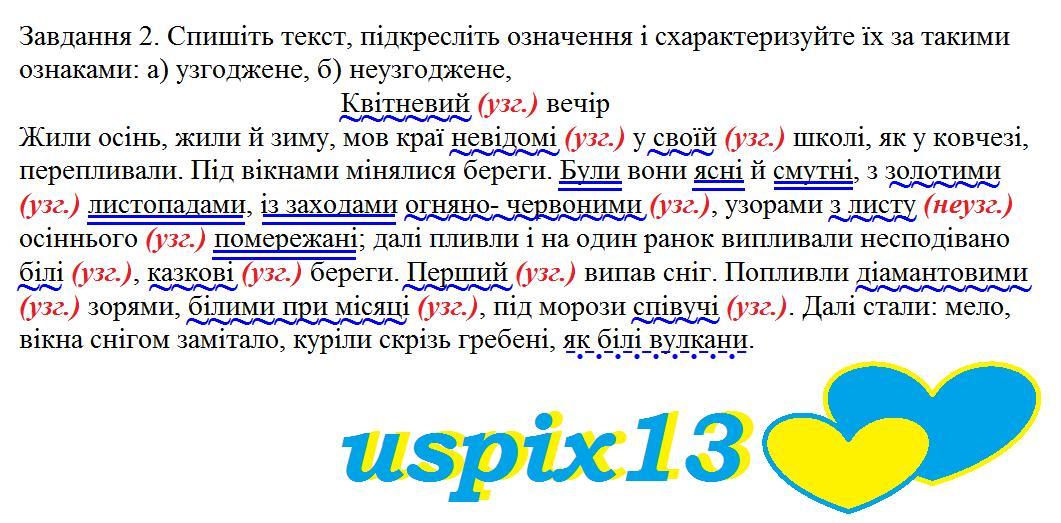 Завдання 2. Спишіть текст, підкресліть означення і схарактеризуйте їх за такими ознаками: а) узгоджене, б) неузгоджене,