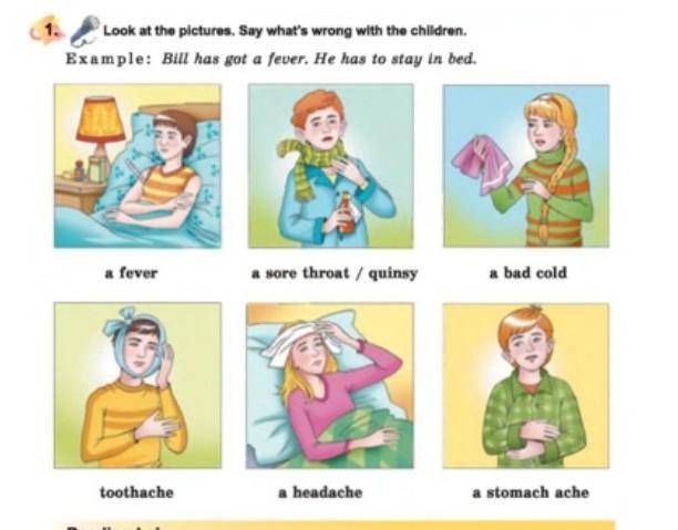 Ответ:1. the boy is sick, he's lying in bed. 2.the boy is sick with a cough and a sore throat. 3. не знаю. 4.the boy is sick with a toothache. 5.the girl is sick with a fever and lying in bed.6. не поняла что на картинке