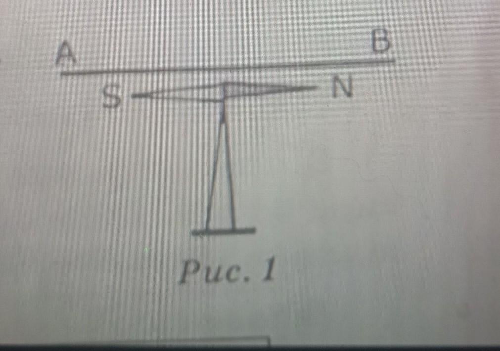 Указати полюс,яким повернеться відносно спостерігача магнітна стрілка ,якщо струм у провіднику напрямлений від А до В