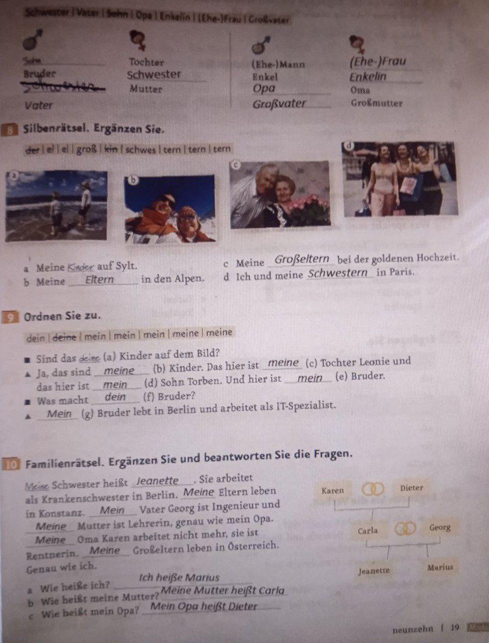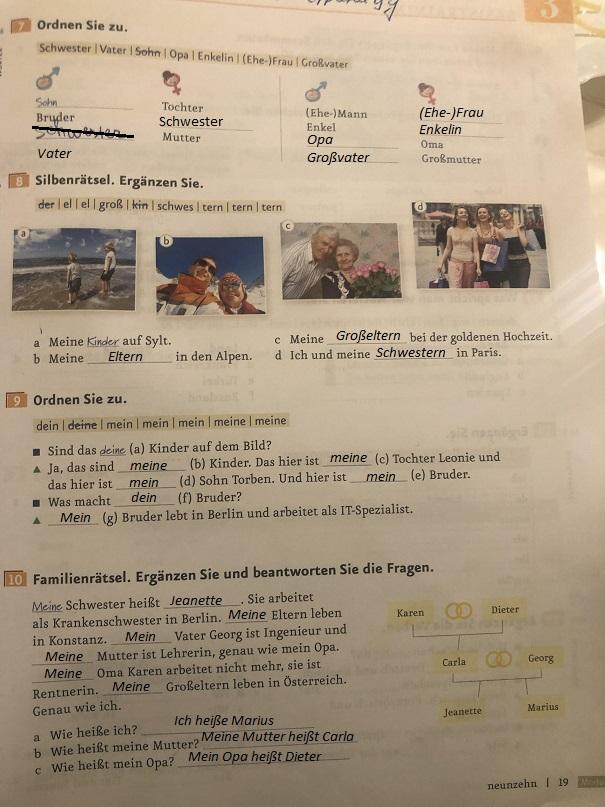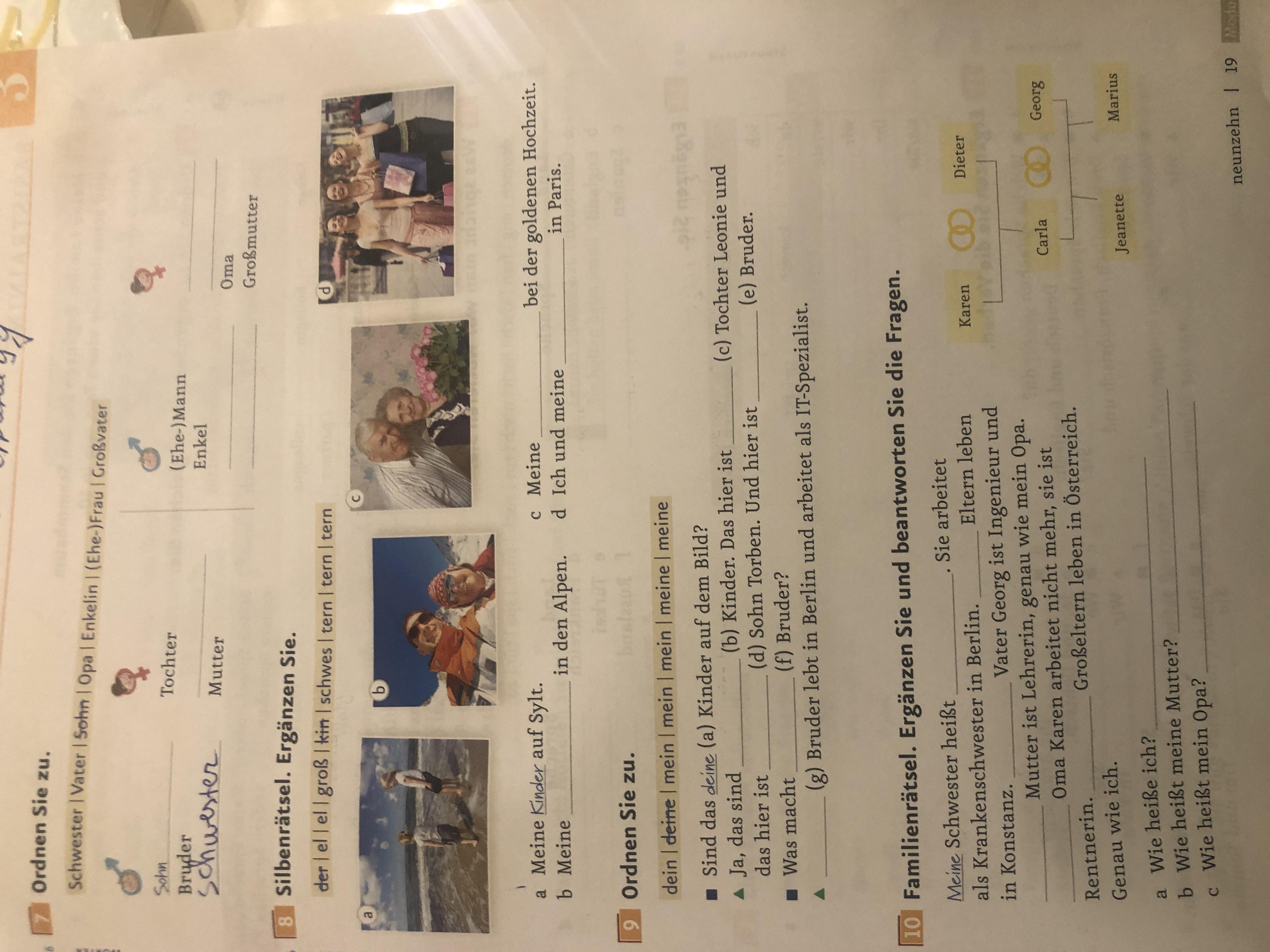 Відповідь на фото. Доречі, замість Schwester треба писати Vater, тому що навпроти Mutter, Schwester - Bruder, Vater - Mutter