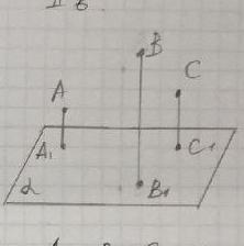 Точки А1, В1, С1 є паралельними проекціями точок А, В, С (на площину альфа).