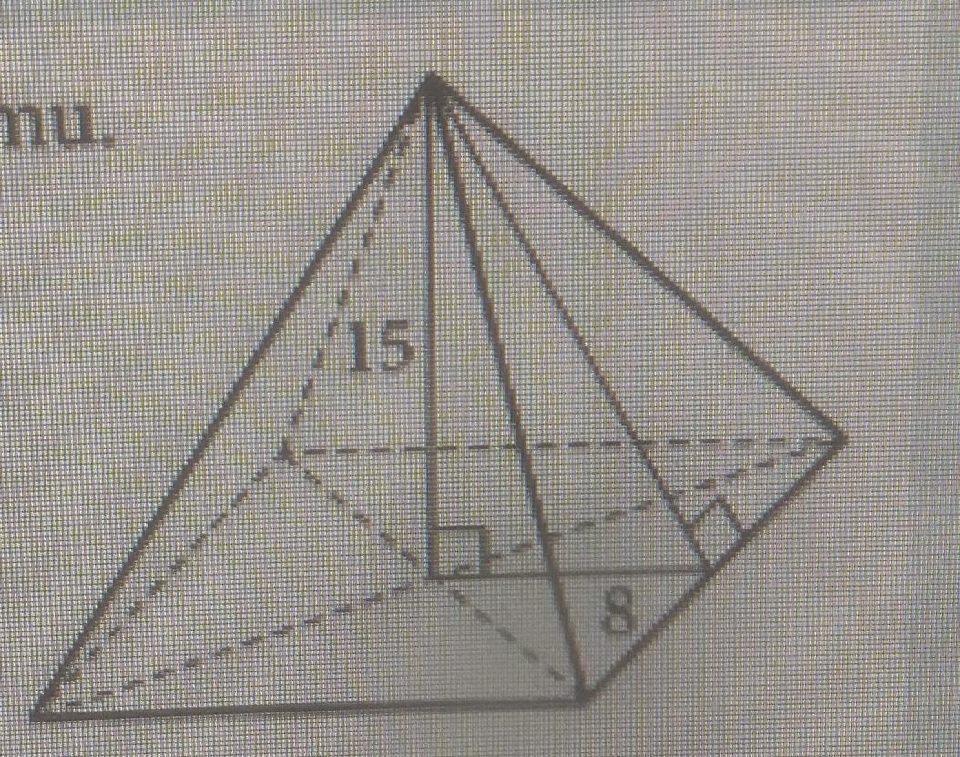 Дана правильная четырехугольная пирамида. Вычислите площадь боковой поверхности пирамиды.