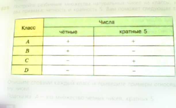 Постройте разбиение множества натуральных чисел на классы , используя два признака: чётность и кратность 5. Вам поможет следующая таблица.
